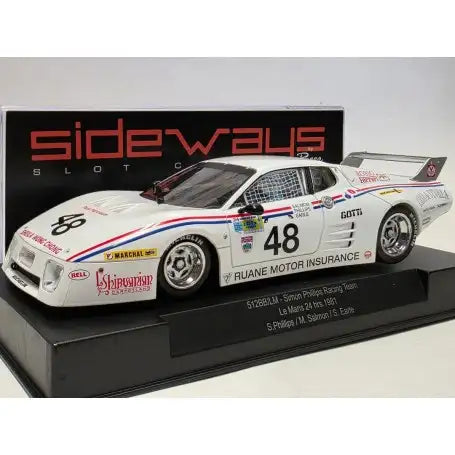 Sideways cars have commendable detailing and mechanical superiority. The Ferrari 512BB/LM is a retro 70's LeMans GTX race car with a clear and distinctive design with the sole purpose of entering races and win! With a purposefully wide body kit, the 512BB definitely isn't lacking in performance! Whether you choose to blast through corners with magnets or go magnet-less, this car will definitely deliver. Set it up to your driving style and you will amazed by this car around any track. This car comes equipped with a anglewinder layout chassis that will allow mountains of modification and settings possibilities.